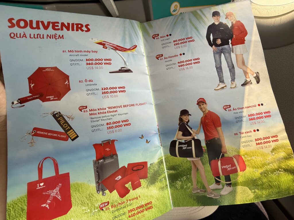クレジットカードも使えたのかもしれませんが、窓際の私の席から通路までが遠く、隣の欧米人カップルを押しのけてCAさんに声をかける勇気がなかった私は、喉カラカラでベトナムに到着。