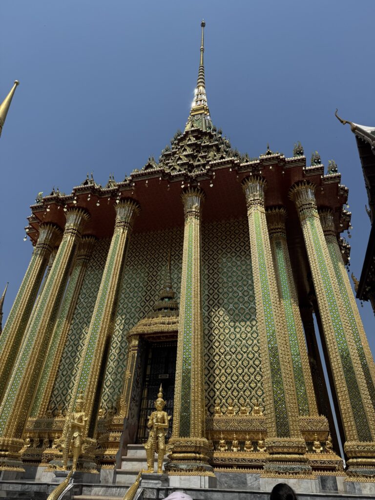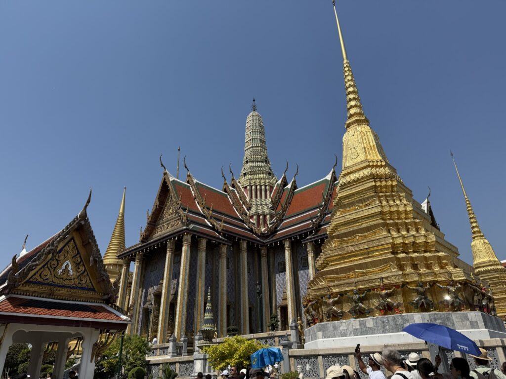 エメラルド色の仏像は撮影禁止だったため写真には残せませんでしたが、たくさんの人がお祈りをしていました。