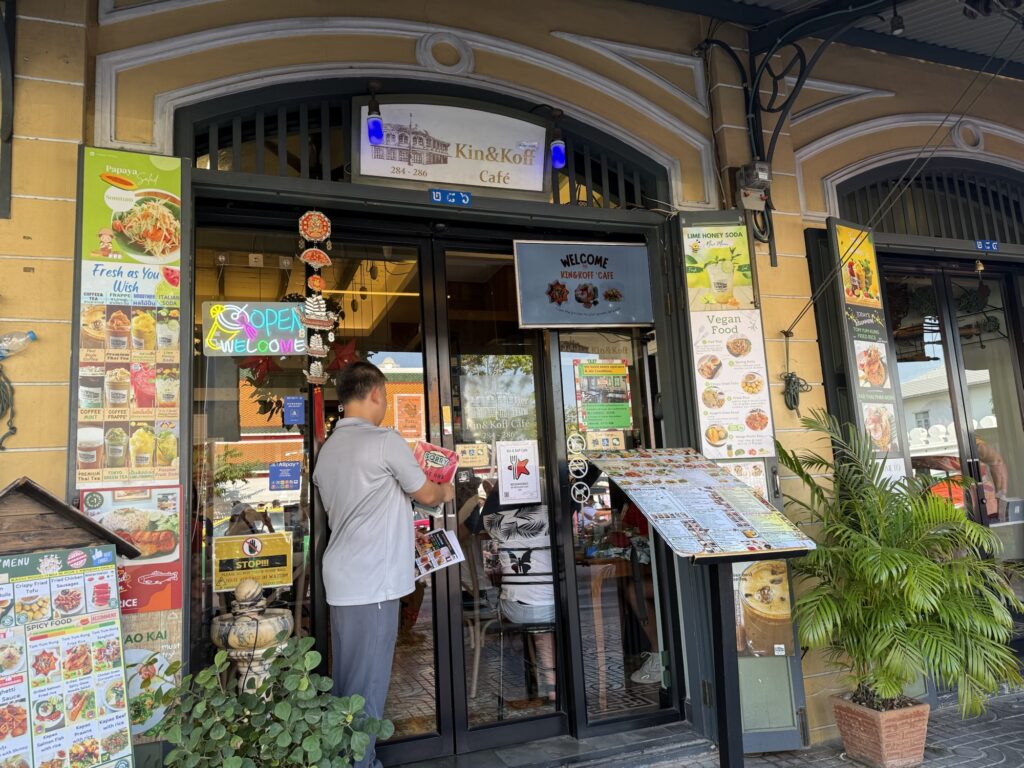 ワットポーを出るとちょうどお昼どきでしたので、近くにあるごはん屋さんに入ることにしました。