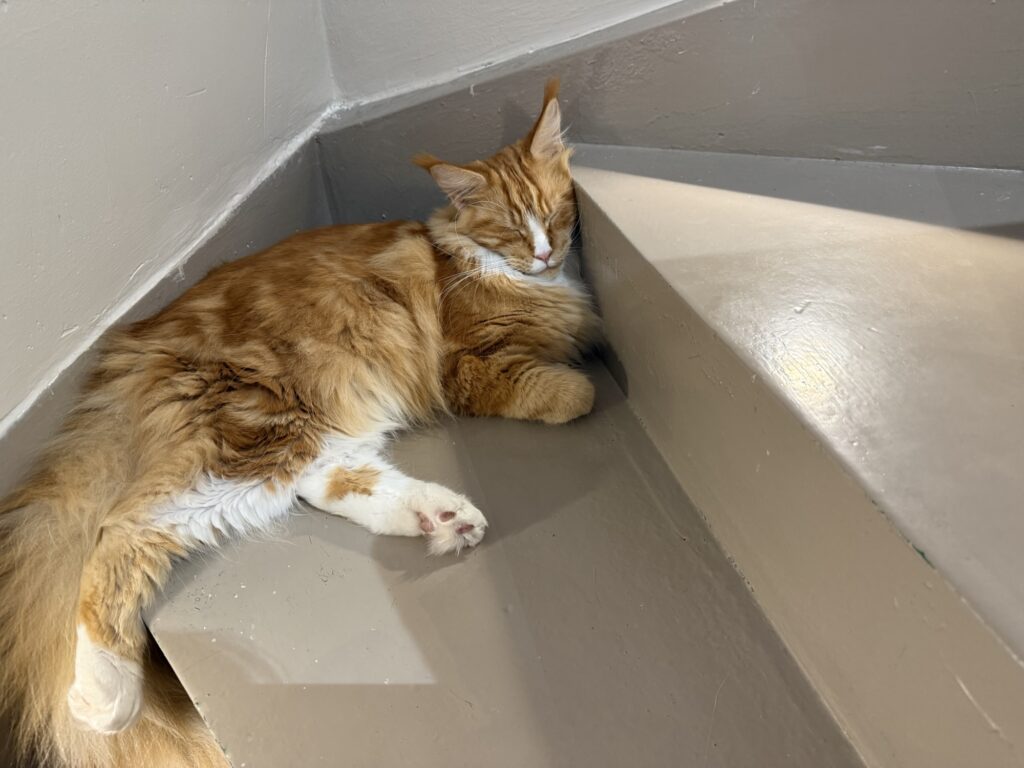 ねこは2階と3階にいて、階段で自由に行き来していました。