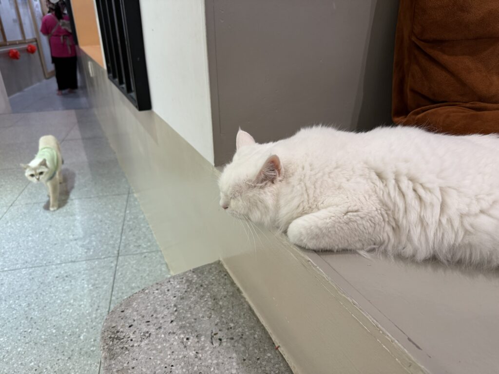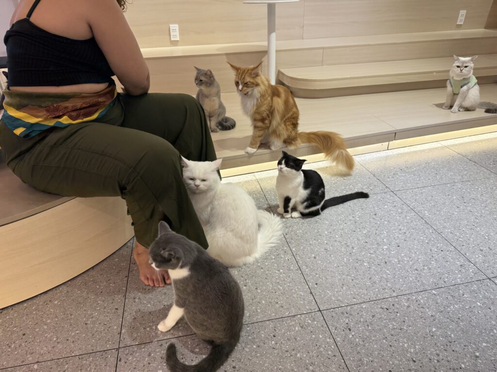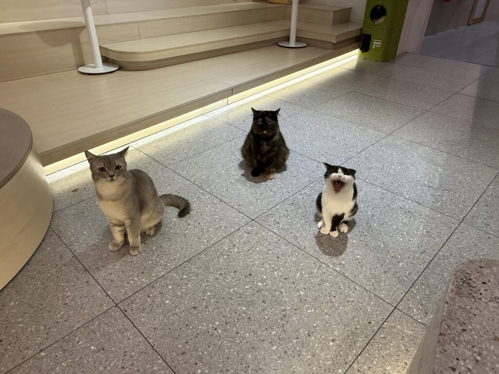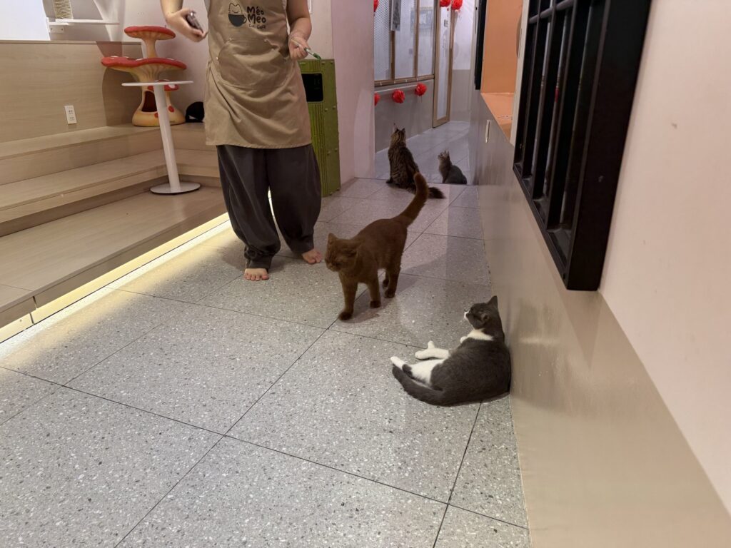 店員さんたちもねこをとても可愛がっていて、抱っこしてほおずりしたり、写真を撮ったりしていました。楽しそうな仕事!笑