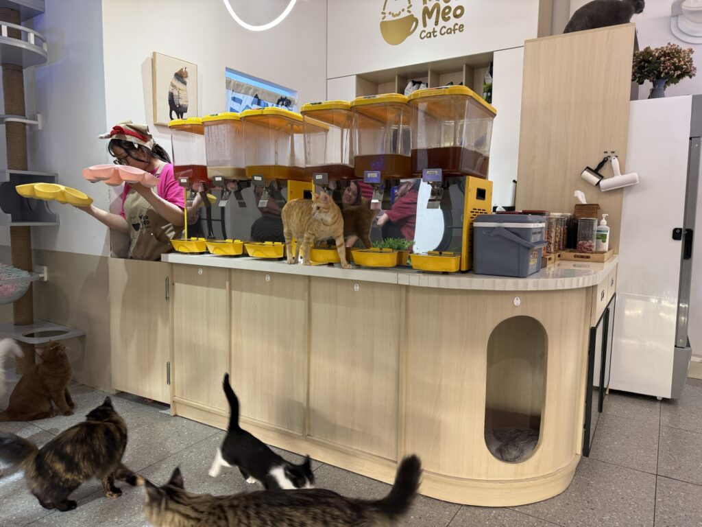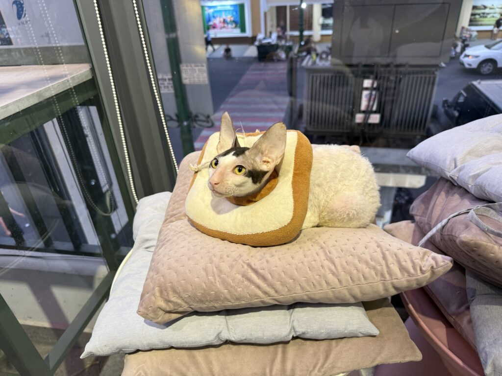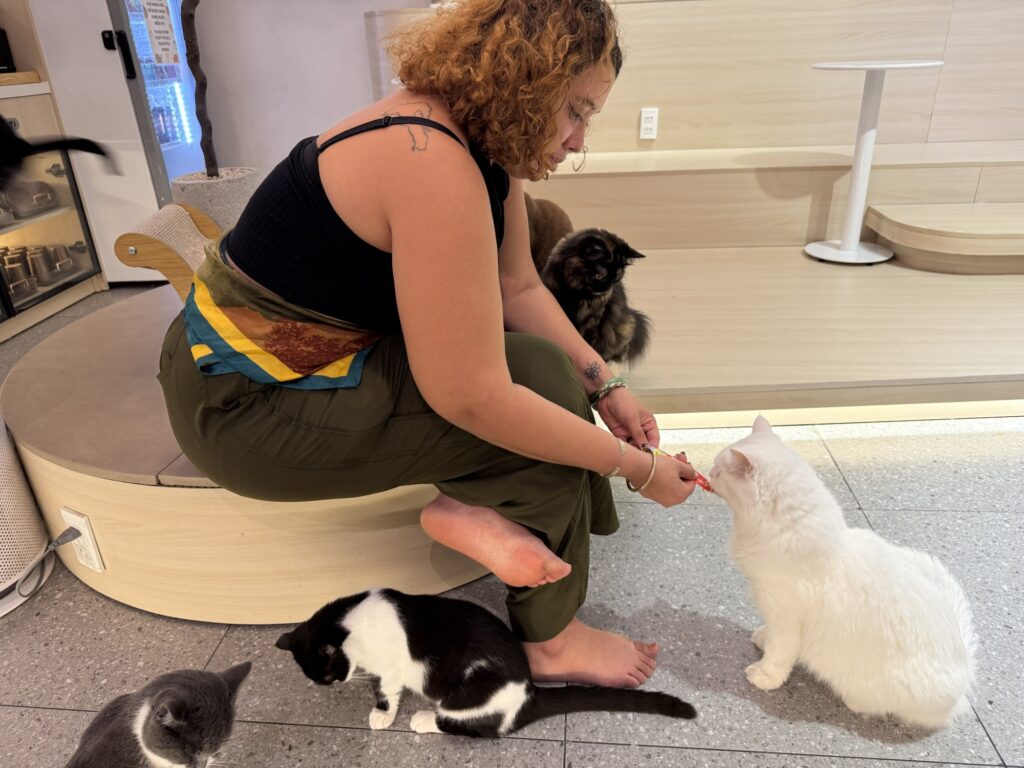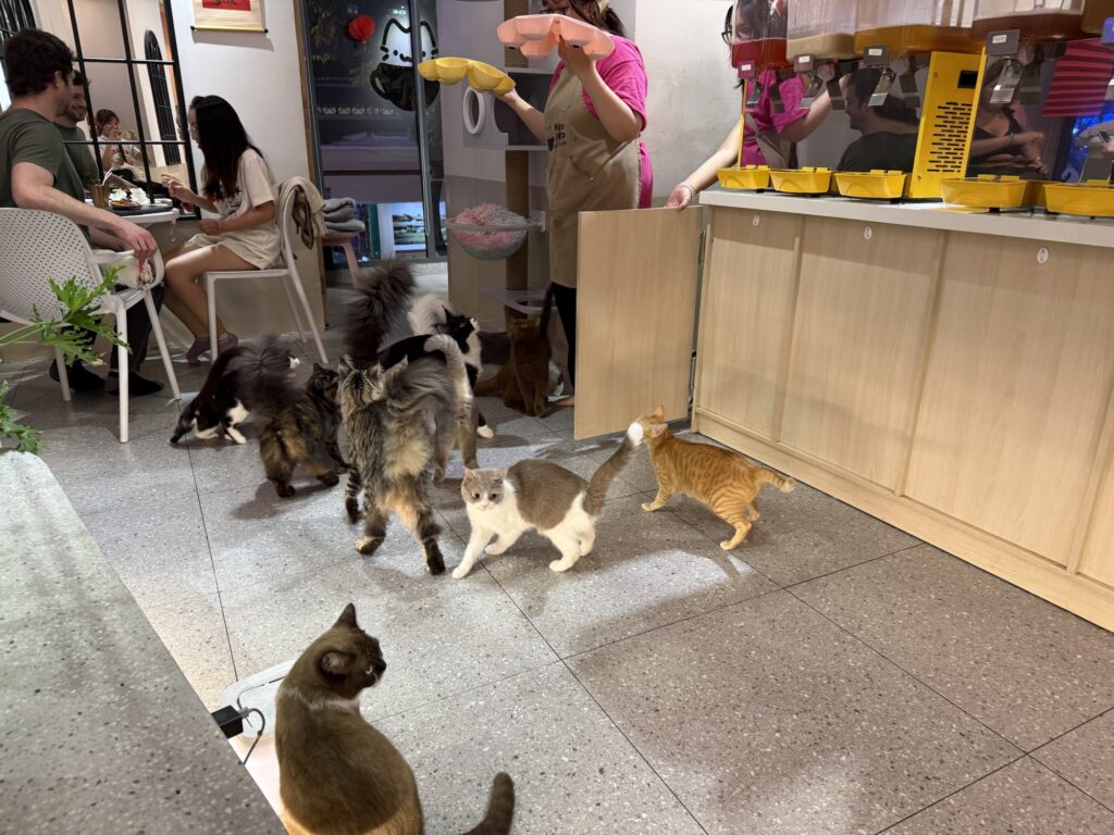 店員さんたちもねこをとても可愛がっていて、抱っこしてほおずりしたり、写真を撮ったりしていました。楽しそうな仕事!笑