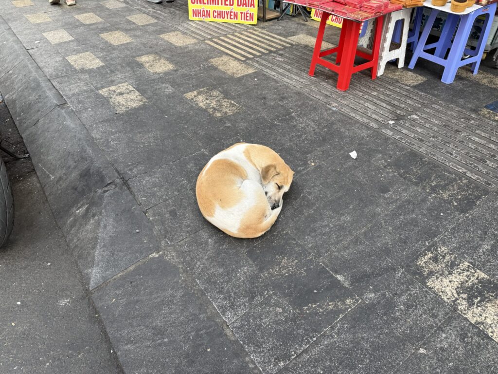 日本では犬が道端で自由にしている姿は見られないので、ベトナムっぽくて面白いです。