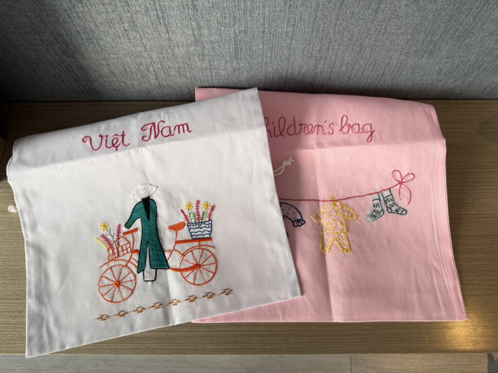 刺繍のきんちゃく、2つで100,000ドン(約600円)