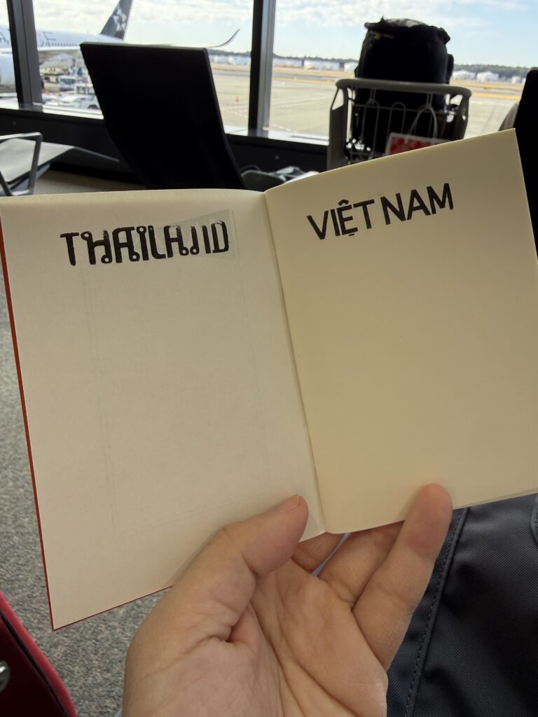 タイとベトナムのスタンプを見つけて、歓喜しながら買ったばかりのノートに押しました。