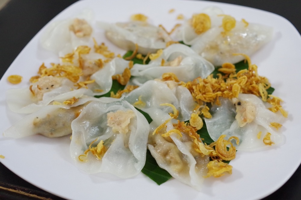 海老蒸し餃子のようなお料理だそうで、白いバラのような見た目から「ホワイトローズ」と呼ばれているそう。